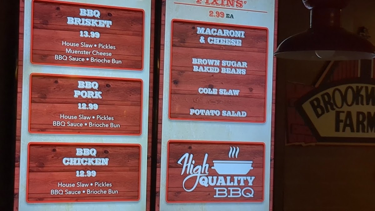The pace of service and the menu’s simple, generous portions reflect the setting, making it convenient for travelers and locals alike to enjoy a well-rounded barbecue meal without fuss. Warm, inviting, and practical, Brookwood Farms’ menu matches the steady rhythm of airport dining while bringing a touch of home-style flavor to the day.